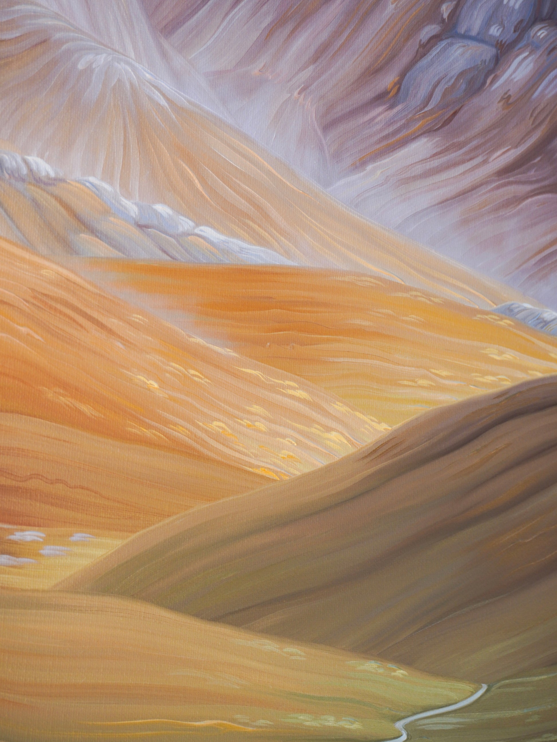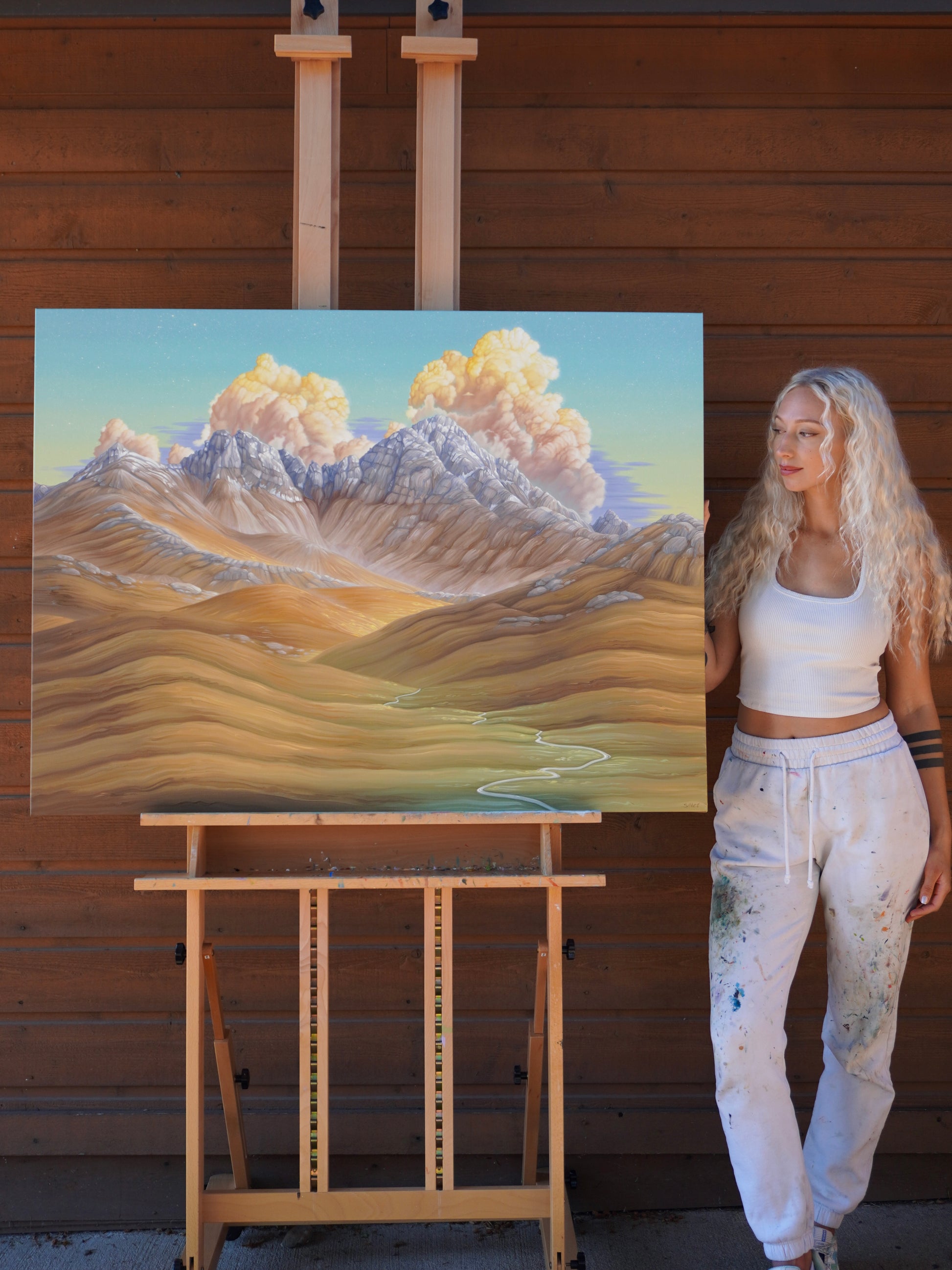 36" x 48" oil on stretched linen. Hand signed and dated on the back. Certificate of Authenticity (COA) and custom framing included with purchase.