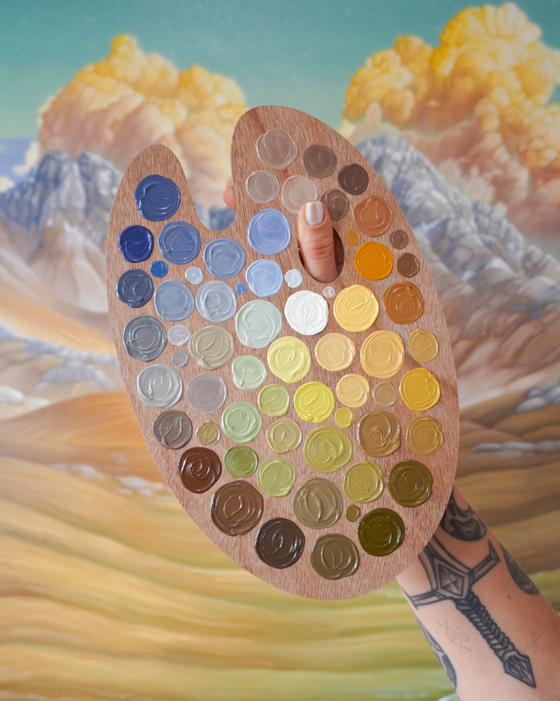 These colors led to the creation of my original oil painting titled "Beyond the Edge of Time". To create this palette, I carefully applied the remaining paint from my working glass palette to a primed wood replica. After several months of drying time, I applied a gloss varnish to protect the surface and bring life and vibrancy back to the paints.